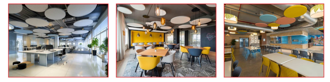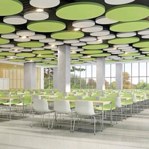 Lightweight, durable, and easy to install, Konstrux circular ceiling panels combine strong acoustic performance with modern aesthetics. Available in a wide range of custom colors and sizes, they integrate seamlessly with any interior concept—delivering a perfect balance of functionality, sustainability, and visual appeal.