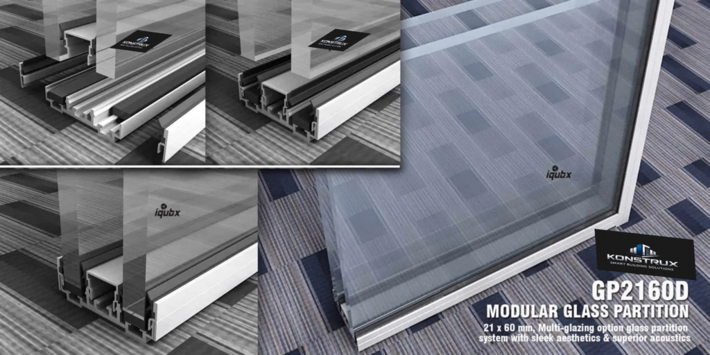 The KONSTRUX GP18100 is a highly advanced modular aluminium glass partition system designed to support multiple glazing configurations within a single base profile. It is ideal for projects requiring flexibility, high acoustic performance, and future scalability.