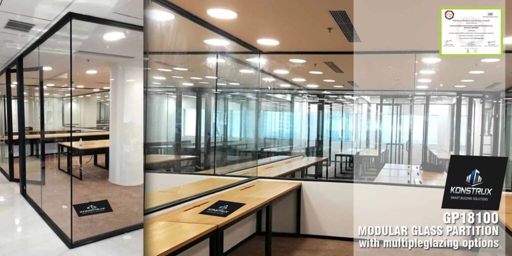 Konstrux offers advanced modular aluminium snap-fit glass partition systems designed for modern interiors. These sleek systems allow quick installation and effortless glass replacement without the need for floor or ceiling chasing. Their modular construction enables easy dismantling and reinstallation at new locations with minimal material wastage.